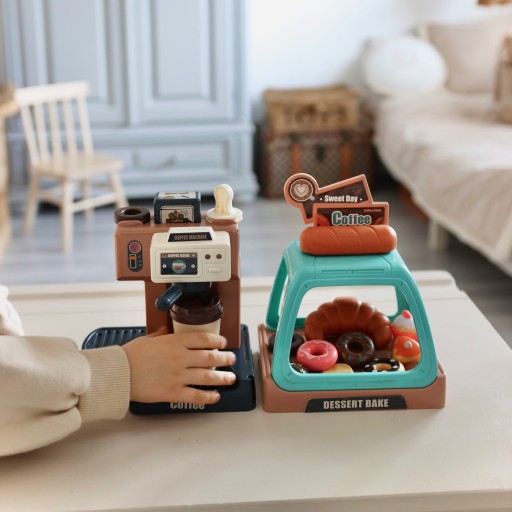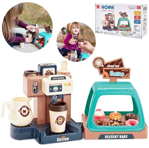 Ekspres do kawy od marki WOOPIE to idealny zestaw dla dzieci, które uwielbia wcielać się w rolę dorosłych. Zestaw oprócz ekspresu i wiaty na ciastka zawiera słodkości takie jak donaty czy babeczki w różnych smakach. Ekspres i witrynę można ze sobą dowolnie łączyć lub używać oddzielnie. Ekspres do kawy ma funkcję przepływu wody, wystarczy nalać od góry wodę do pojemnika, zamontować kolbę ekspresu, podstawić kubeczek i kawa gotowa! Ponadto wydaje dźwięki/odgłosy mielenia i parzenia kawy, świeci się wtedy mrugająca czerwona lampka, a gdy kawa będzie gotowa zaświeci się zielone światło i usłyszymy sygnał zakończenia pracy. Po zamontowaniu portafiltra usłyszymy również odgłos nalewania kawy. Zabawka z pewnością zaciekawi każde dziecko. Zabawa w sklep z przyjaciółmi pomoże rozwinąć świadomość i zdolności społeczne.