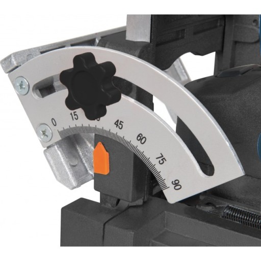 - Możliwość Regulacji kąta natarcia frezu - prowadnica kątową możemy ustawić w zakresie 0-90°.Dzięki temu wyfrezowane gniazda pod lamelki mogą łączyć elementy nie tylko pod kątem prostym, ale też pod dowolnym kątem w zakresie 0-90°
