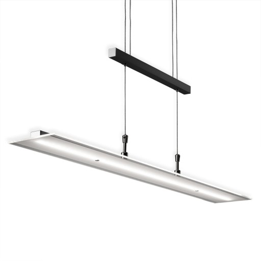 - Elegancki design: Lampa jest wykonana z metalu i szkła, co nadaje jej nowoczesny wygląd. Dopełnieniem jest mleczna szyba o szerokości 12 cm i długości 85 cm z przeźroczystymi brzegami. Kolorystyka lampy to czarny mat, biały klosz i przeźroczyste elementy, które dodają uroku i stylu Twojemu wnętrzu.