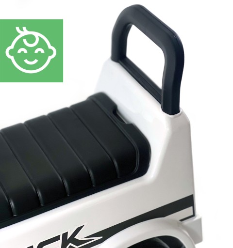 - Odpowiednio wyprofilowane oparcie przekształca jeździk w klasyczny chodzik. To praktyczne rozwiązanie sprawia, że jeździk jest przydatny także przy nauce chodzenia!