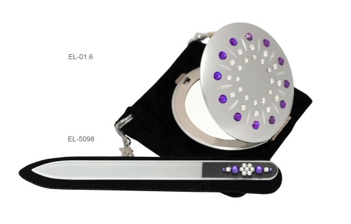 Komplet Lusterko aluminiowe + czeski pilnik z Swarovski fioletowe lawenda