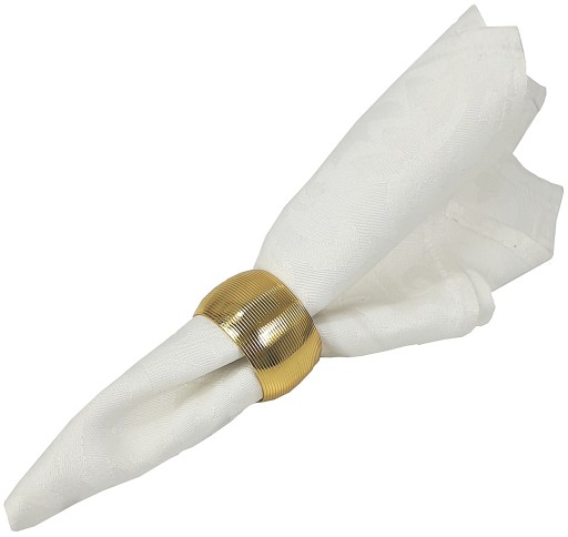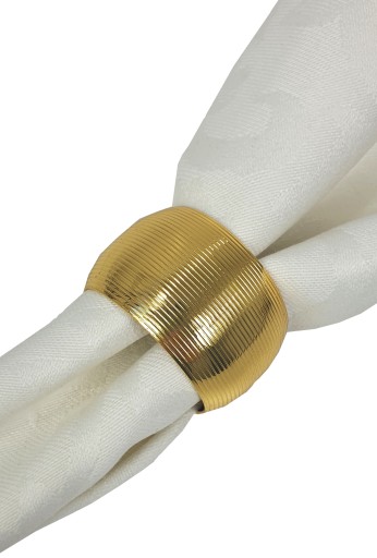 Zestaw zawiera 4 sztuki obrączek na serwetki, który świetnie sprawdzi się do dekoracji stołu. Złote pierścienie umieszczone z serwetą na talerzach lub dekoracyjnych podkładkach tworzą efektowną całość.