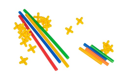 Duży zestaw klocków w kształcie kolorowych słomek wykonanych z plastiku, które świetnie pobudzają wyobraźnię i kreatywność dziecka.