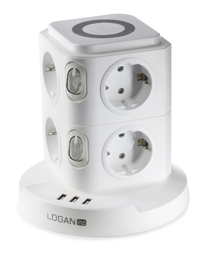 Uniwersalny przedłużacz sieciowy z funkcją ładowania bezprzewodowego Logan Inc WS8-2