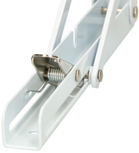 - Kątownik można w łatwy sposób złożyć po zwolnieniu blokady – możliwe jest więc ekspresowe rozkładanie i blokowanie półki.