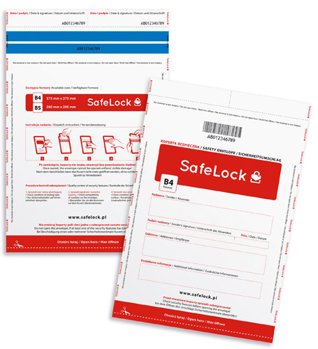 - System zabezpieczeń zastosowany w kopertach chroni ich zawartość przed ingerencją osób trzecich, każda próba otwarcia koperty pozostawi widoczne znaki ingerencji w zawartość, otwarcie koperty jest nieodwracalne.