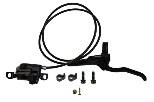 Nowy zestaw hamulca hydraulicznego, na przednie koło firmy Shimano zacisk, przewód wraz z zintegrowaną dźwignią, klamką hamulcową na lewą stronę kierownicy. Jest to nowa konstrukcja z grupy Altus, łącząca w sobie bardzo dobrą sprawność hamowania oraz trwałość.
