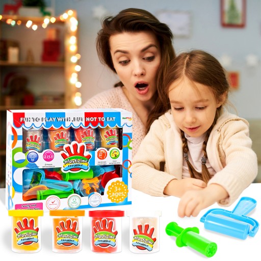 MASA PLASTYCZNA CIASTOLINA 4 KUBECZKI AKCESORIA PLASTELINA CIASTOMASA
