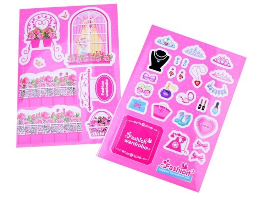 Domek rewelacyjnie wykonany z zadbaniem o najdrobniejsze szczegóły ozdobne. Posiada otwierane drzwi do wnętrza garderoby, gdzie znajdują się półeczki, wieszaki i schowki na kobiece fatałaszki. Domek wykonany z plastiku, z tekturowym wykończeniem. Do ozdoby domku można użyć naklejek, które znajdują się w zestawie.