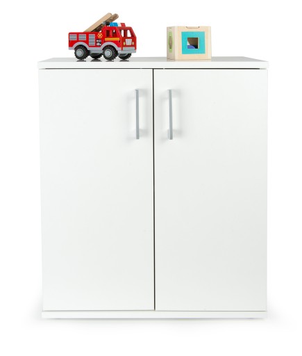 - Zamykana szafka z uchwytami w srebrnym kolorze (regulowane zawiasy).
