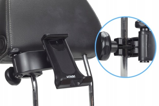 Oryginalny, regulowany uchwyt samochodowy montowany do zagłówka marki Webski.