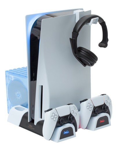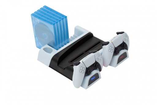 - Zawartość zestawu: Ładowarka na 2 kontrolery, Podstawka chłodząca, Stojak na gry, Wieszak na słuchawki
