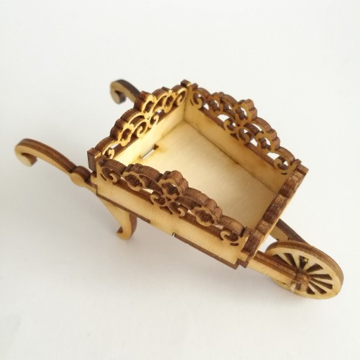 Drewniane taczki 3D, ozdoba ze sklejki.