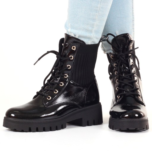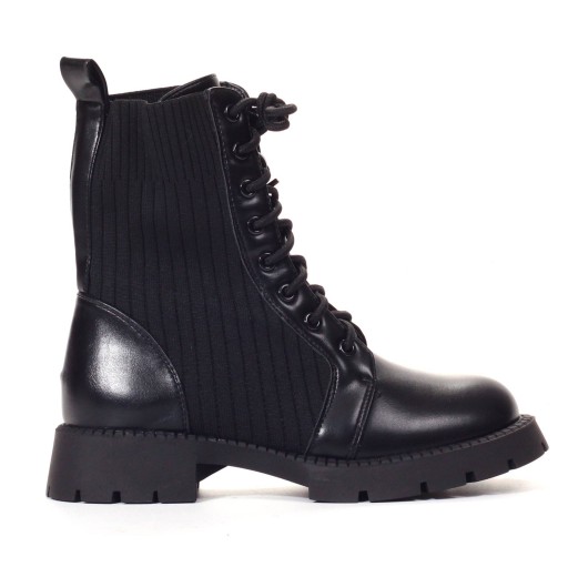 Modne czarne wiązane workery na grubej podeszwie