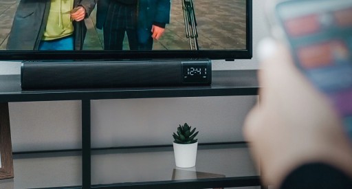 System głośników zastosowany w soundbarze przeniesie nas w świat kina , gier czy koncertów . Nowoczesne rozwiązania pozwalają na odtwarzanie dźwięków STEREO co zwiększa jakość dźwięków przestrzennych z filmu , sportu , muzyki i gier