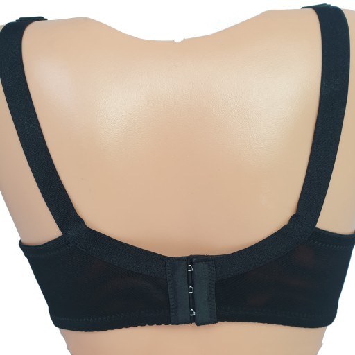 model 1325 zapinany 3 rzędy na 3 haftki,szerokie regulowane ramiączka,miseczki z fiszbinami i delikatną koronką,na środku subtelna ozdoba w postaci kokardki lub kwiatka