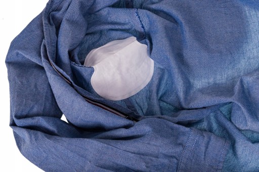 - Umieść większa część wkładki na ubraniu po stronie tułowia, a mniejszą część na ubraniu po stronie rękawa.