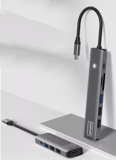 HUB USB-C ADAPTER 7w1 ZENWIRE z portami: HDMI 4K, USB 3.0, 2x USB 2.0, SD i micro SD, Power Delivery 100W