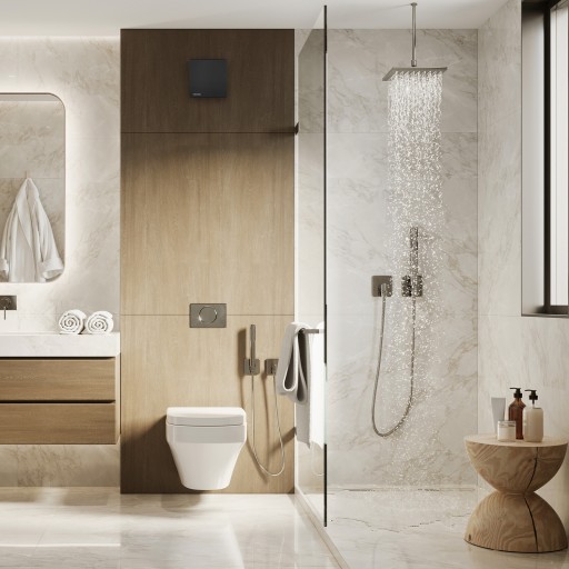 Вентилятор для ванной комнаты EBERG EVO, стекло, черный матовый + заслонка