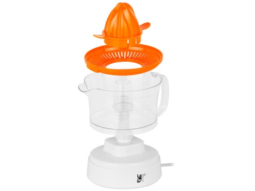 Sposób użytkowania wyciskarki jest bardzo prosty - wystarczy przekrojony na pół owoc i docisnąć do stożka. Urządzenie włączy się automatycznie, stożek będzie zmieniać kierunek obrotów przy każdym dociśnięciu. Wszystko po to, aby wydobyć maksimum soku z dojrzałej pomarańczy czy grejpfruta.