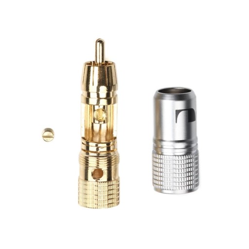 Pozłacana śruba pozwala na pewny montaż kabla o średnicy nawet do 10 mm. Każdy z wtyków, mających korpus wykonany z mosiądzu, osadzony jest w obudowie wykonanej z wytrzymałego aluminium, która sprawia, że wtyk jest solidny, trwały oraz elegancki.