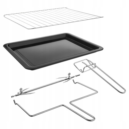 Piekarnik jest wyposażony w tacki, ruszt, rożen i uchwyty. Tacka umożliwia przygotowywanie różnego rodzaju potraw, takich jak ciasta, ciasteczka, mięsa, warzywa i inne. Ruszt umożliwia pieczenie na kilku poziomach jednocześnie, co jest szczególnie przydatne przy przygotowywaniu dużych potraw takich jak kurczak lub pieczeń. Rożen jest doskonałym dodatkiem dla mięsa i pozwala na uzyskanie smacznego i soczystego kurczaka.