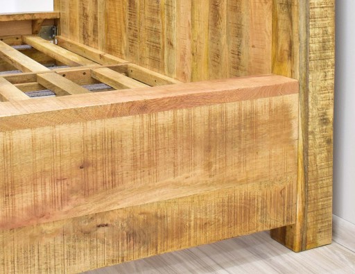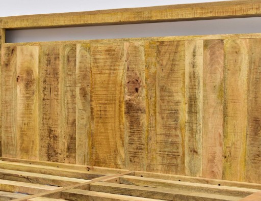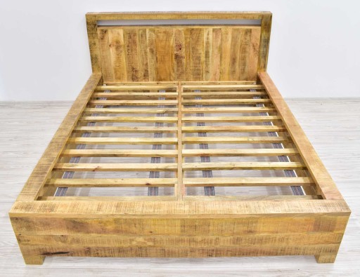 Łóżko indyjskie wykonane w 100% z litego drewna mango w naturalnym wybarwieniu. Łóżko posiada stelaż i pasuje pod materac 180x200cm. W tej samej kolekcji znajdują się szafki nocne oraz komody, które razem mogą stworzyć niestandardowe wnętrze.