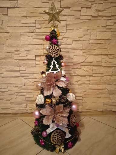 Wykonujemy choinki z dekoracją w kolorze: srebrnym, białym, złotym, niebieskim, czerwonym, brązowym, zielonym, fioletowym lub mieszanym np. złoto-czerwona.