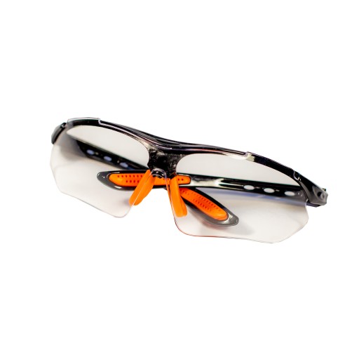 Wysokiej jakości przeciwodpryskowe okulary ochronne. Wytrzymałe, polikarbonowe szybki. Okulary przeznaczone do ochrony oczu przed opryskami ciał stałych powstających podczas obróbki, drewna, metali, materiałów ceramicznych, tworzyw sztucznych itp.