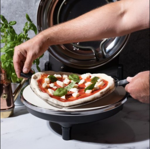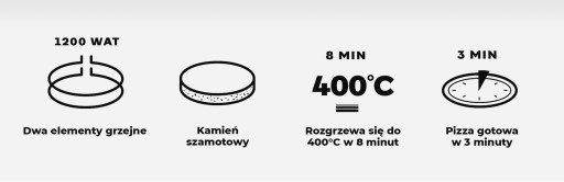 Oferowany elektryczny piecyk do pizzy wyposażony jest w dwa elementy grzejne o łącznej mocy 1200W rozgrzewające urządzenie do 400°C oraz specjalny szamotowy kamień o powierzchni roboczej 32 cm, który pozwala na kumulację temperatury i skuteczne odprowadzanie wilgoci z ciasta, dzięki czemu pizza jest idealnie wypieczona i delikatnie chrupiąca.