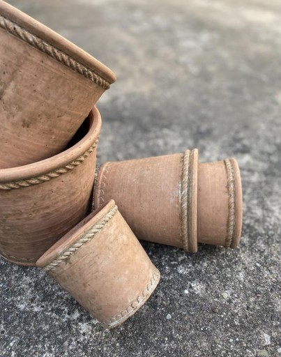 Doniczka wykonana z cementu w stylu rustykalnym w kolorze terakoty i naturalnej ziemi. Ozdobne ornamenty przy górnej krawędzi osłonki i przy podstawie będą przyjemnym dla oka akcentem w każdym pomieszczeniu lub w ogrodzie. Ta nie wielka doniczka sprawdzi się również nie tylko jako doniczka na kwiaty, czy zielone rośliny, ale także na zioła takie jak bazylia, mięta czy kolendra.