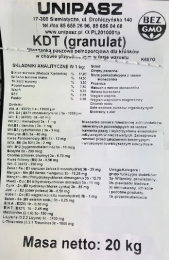 Pełnoporcjowa mieszanka paszowa dla królików w chowie przydomowym w fazie wzrostu do osiągnięcia pożądanej wagi.