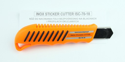 INOX STICKER CUTTER to specjalistyczny nożyk do odcinania folii na blachach i profilach nierdzewnych o powierzchni szlifowanej i matowej. Nóż doskonale sprawdzi się także do odcinania folii ochronnej bezpośrednio na szkle.