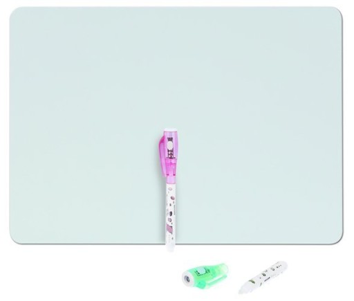 - 2 PISAKI = 2 MOŻLIWOŚCI – komplet zawiera 2 pisaki z dwoma różnymi możliwościami użycia. Pierwsza z nich to malowanie światłem LED znajdującym się na osłonce długopisu, wystarczy włączyć go za pomocą suwaka, drugi sposób to pisanie ze zdjętą końcówką w formie zwykłego mazaka, doskonale sprawdzi się do przekazywania tajnych wiadomości widocznych tylko w ciemności. Pisak posiada klips, który można przyczepić do tablicy, przypiąć do kieszeni, bądź plecaka – tak by mieć go zawsze przy sobie, bez ryzyka zgubienia.