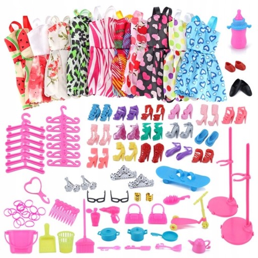 ZESTAW UBRANEK I AKCESORIÓW TO AŻ 85 ELEMENTÓW DO NAJPOPOLARNIEJSZEGO ROZMIARU LALEK DLA DZIEWCZYNEK.