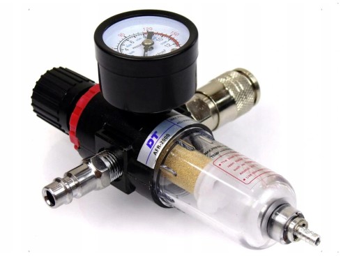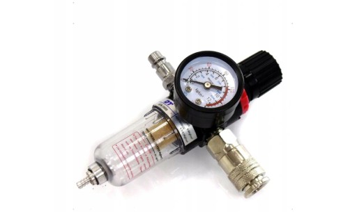 Zespół filtrujący z reduktorem zapewnia pełną kontrolę nad jakością powietrza. Reduktor z manometrem pozwala regulować ciśnienie w układach sprężonego powietrza. Odwadniacz zawierający separator wody oczyszcza sprężone powietrze z wilgoci, oleju, kondensatu i cząstek stałych. Filtruje sprężone powietrze z kropel wody, które powodują zacieki podczas malowania czy też korozję innych narzędzi.