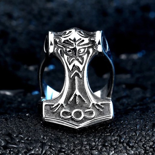 SYGNET OBRĄCZKA WIKINGÓW MŁOT THORA STAL 316L