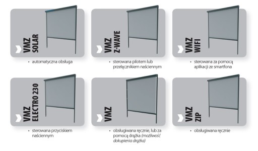 Posiadamy w ofercie wszystkie typy, rodzaje, napędy (ręczne, elektryczne, solarne).