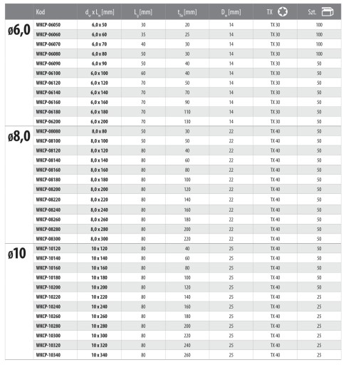 Wręty ciesielskie stosowane do połączeń drewno-drewno zastępują gwodzie budowlane i nie wymagają nawiercania .Głębokie gniazdo torx pozwala na lepsze przeniesienie siły wkręcającej i zapobiega wyskakiwaniu bitu.