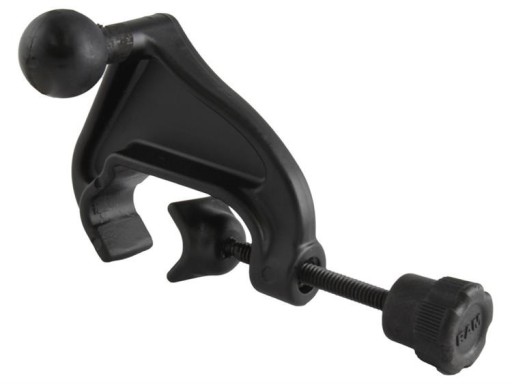 RAM Mount: RAM-B-121BU.Podstawa montażowa z zaciskiem dedykowana do instalacji na przedmiotach w kształcie rurki o średnicy od 1.59 cm do 3.18 cm (od 0.625 cala do 1.25 cala) maksymalnie. RAM-B-121BU jestpołączona z kulą o średnicy 2.54 cm (1.00 cal).