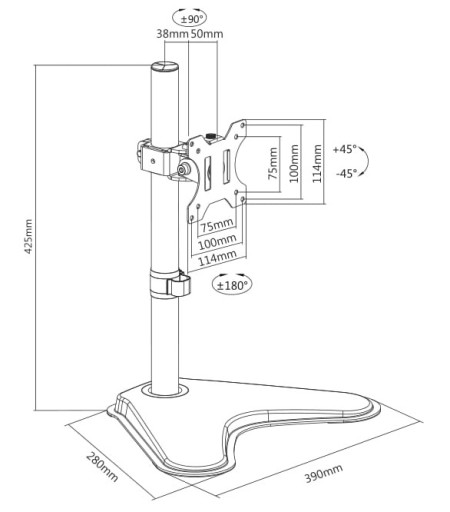 - ➡️stojak wyposażony jest w uniwersalny uchwyt w standardzie VESA