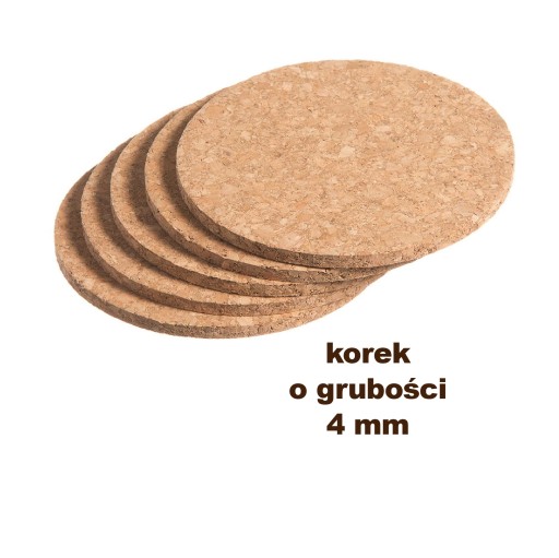 Podkładka wykonana jest z korka naturalnego o grubości 4 mm. Średnica podkładki: 9,5 cm Grubość: 4 mm