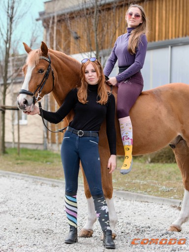 Comodo SJBW to seria modnych, kolorowych podkolanówek przeznaczonych do jazdy konnej sportowej lub rekreacyjnej.