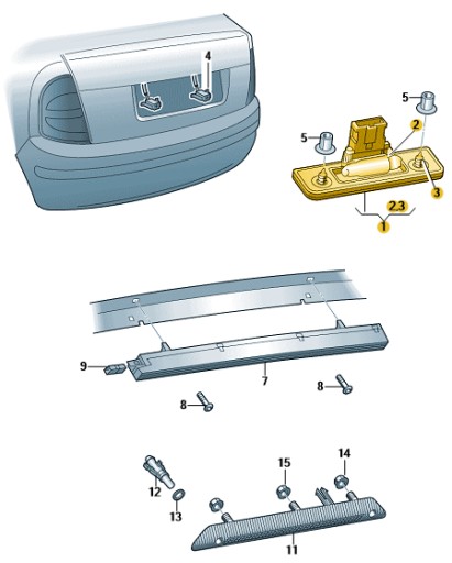 - 1x 1Z0943021B (Lampka tablicy rejestracyjnej, pozycja numer 1 na schemacie)