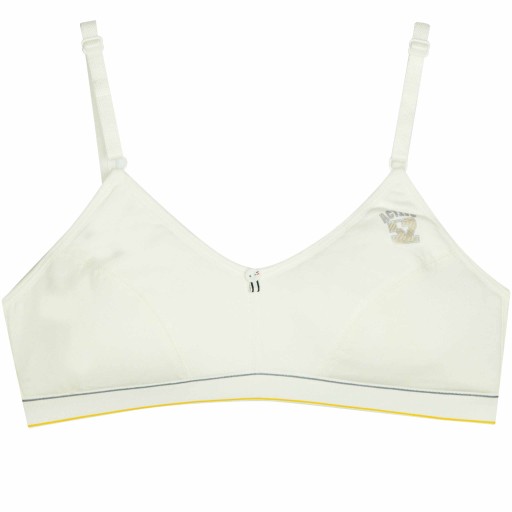 Śliczny stanik w kolorze ecru z niewielkim nadrukiem oraz guziczkiem przy dekolcie. Posiada delikatne przeszycia.