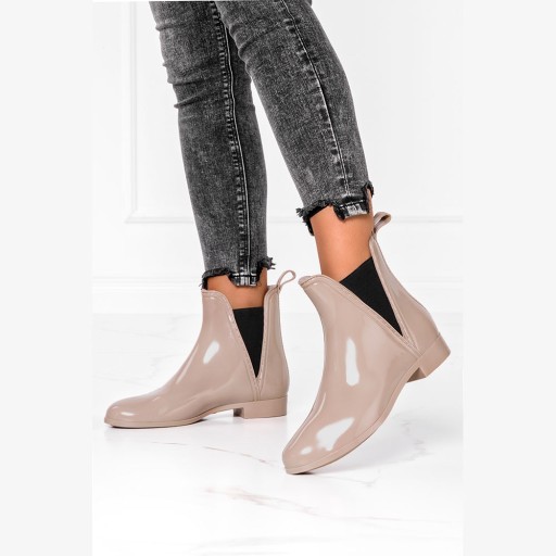 Beżowe kalosze sztyblety z gumkami po bokach Casu YX-219