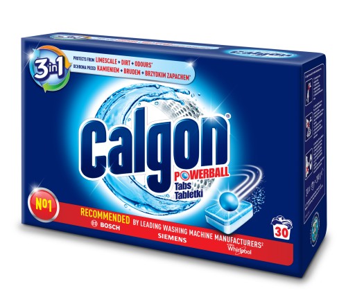 Sposób użycia: należy umieścić tabletkę Calgon w głównej komorze prania, stosować jako dodatek do zwykłego środka piorącego.