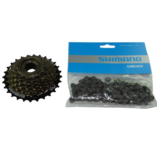 Wolnobieg 7-rzędowy firmy SHIMANO model MF-TZ500.+ łańcuch SHIMANO HG40 (6/7/8rz. 114 ogniw)