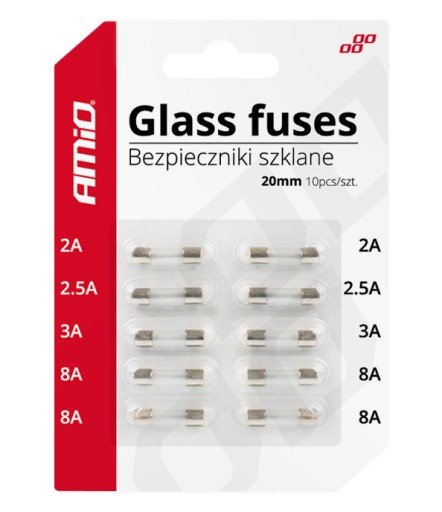 МИНИ АВТОМОБИЛЬНЫЕ ПРЕДОХРАНИТЕЛИ СТЕКЛА 20мм 10 шт.