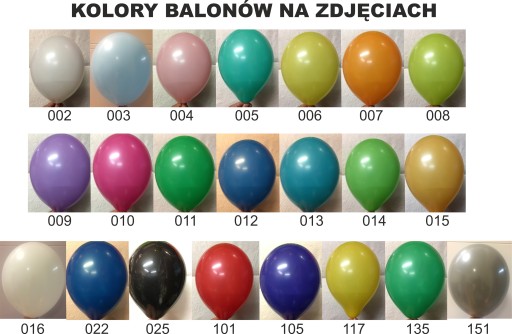 - Kolor nadruku wg listy (kolor nadruku musi być ten sam na wszystkich wybranych kolorach balonów)